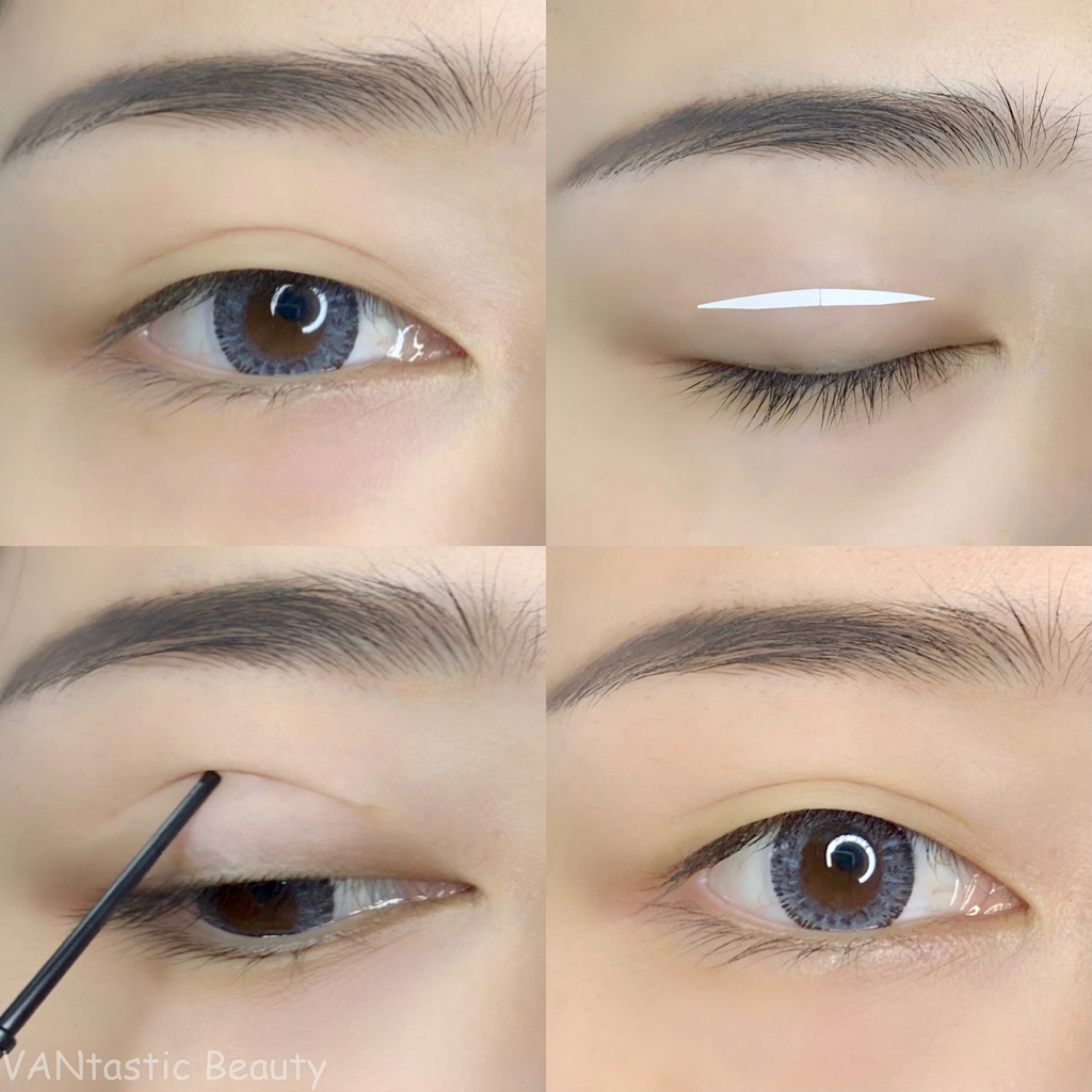 若使用一般的雙眼皮貼會撐不起來,所以我會使用雙面貼將眼皮黏貼起來!